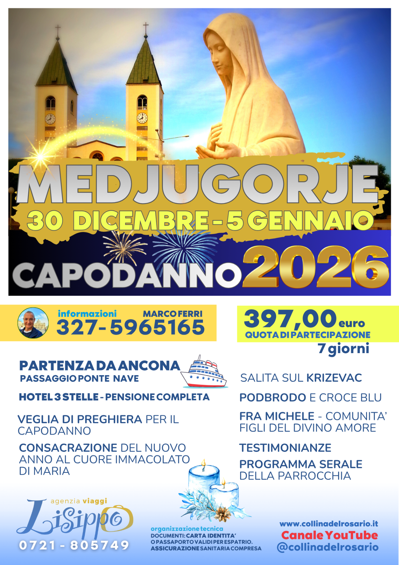 Ciao! Grazie di cuore per il tuo interessamento al pellegrinaggio di Capodanno a Medjugorje.